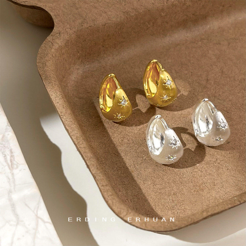 伸糸質感芒星ジルコンマットファッション通勤高級感新耳飾り工場イヤリング女義烏アクセサリー