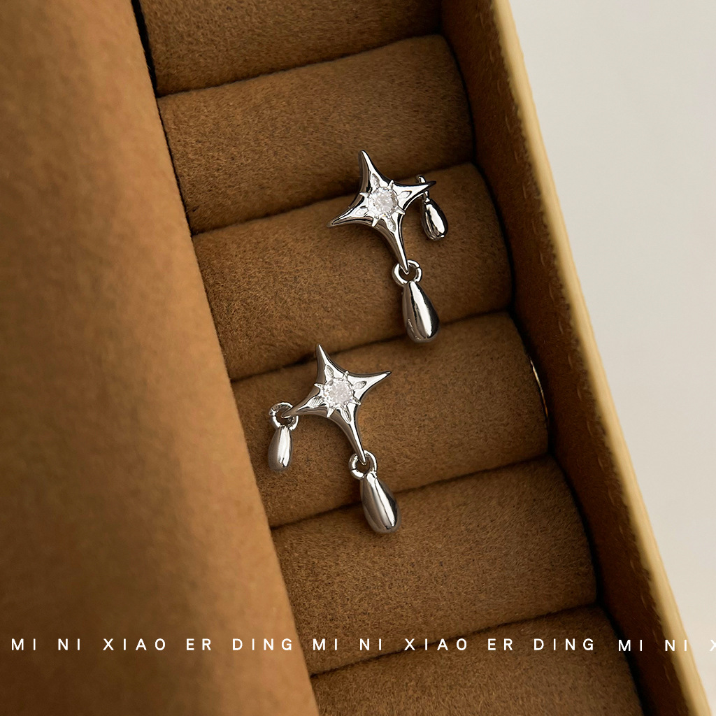 芒星の個性の小さい大衆のデザイナーの甘いクールな冷たい風の925銀の針の銀色の水滴の耳飾りの工場のイヤリング