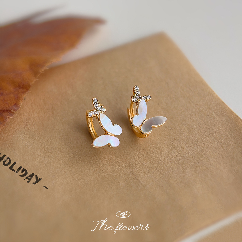 マイクロ象嵌ジルコン本物の貝電気メッキ 14K フォレストスタイルの小さな新鮮でシンプルな通勤多用途ライト高級スタイルのイヤリング女性用