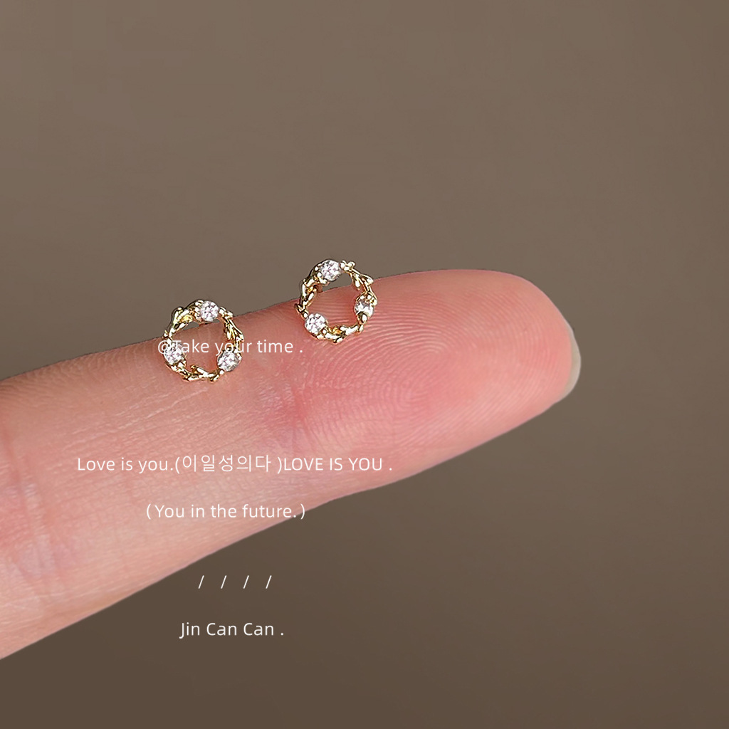 実物は小さめ ~ ジルコン925銀針メッキ14kミニ花輪ピアスシンプル耳飾り工場アクセサリー