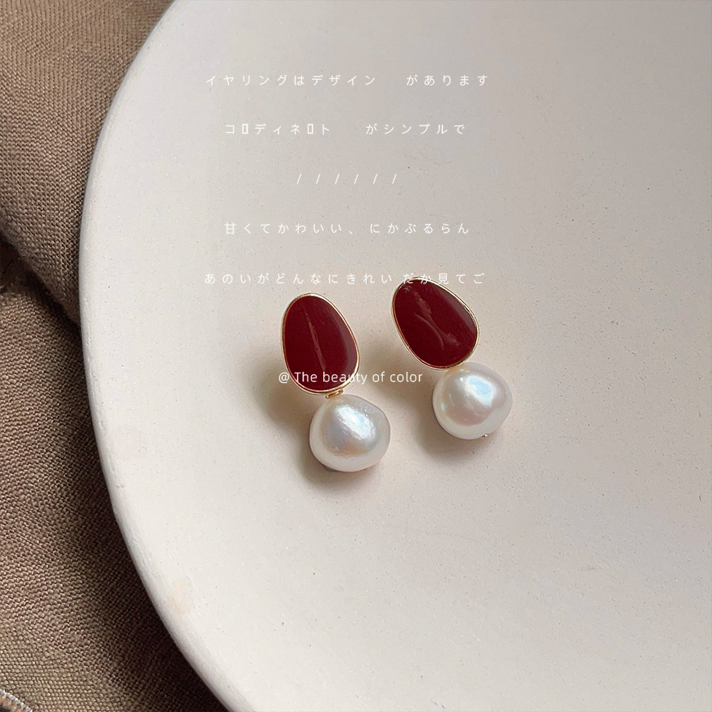 バロック異形淡水真珠925銀針メッキ14k滴釉薬酒赤ピアス気質耳飾り工場イヤリング女