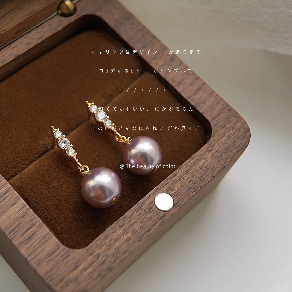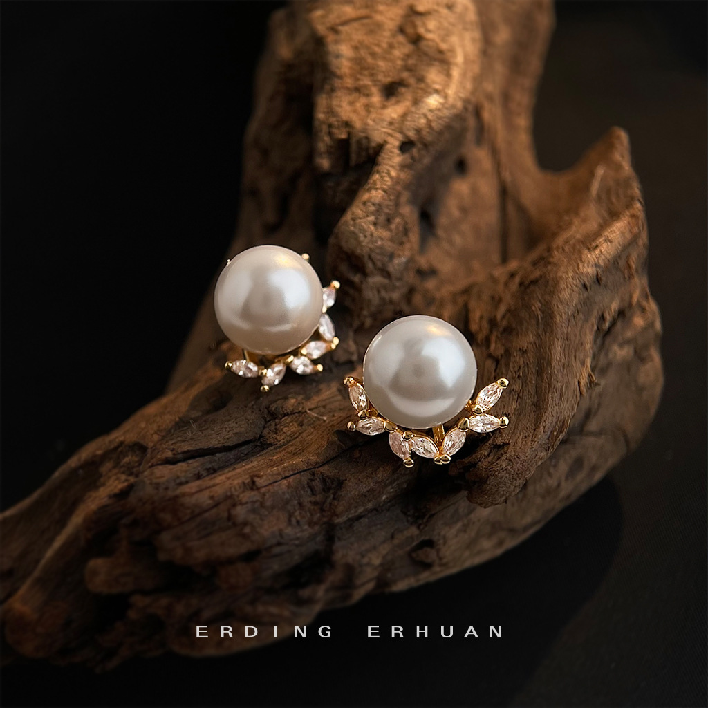 ジルコンガラス爆発パール925シルバー針メッキ14Kファッショナブルな通勤ハイエンド気質イヤリング工場イヤリング