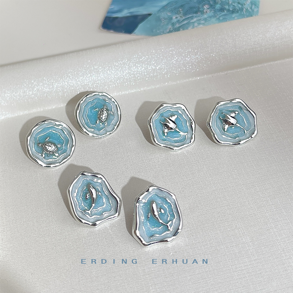 スモッグブルー高級感銀針メッキ14k幾何学異形不規則ピアス釉薬耳飾り工場イヤリング女