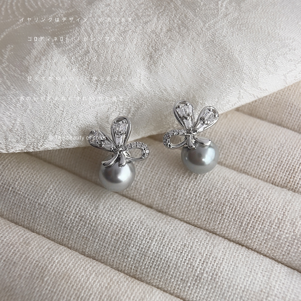 マイクロジルコン象嵌ガラスパールアートバタフライシルバーニードルイヤリング、フェミニンで高級感のあるグレーイヤリング工場