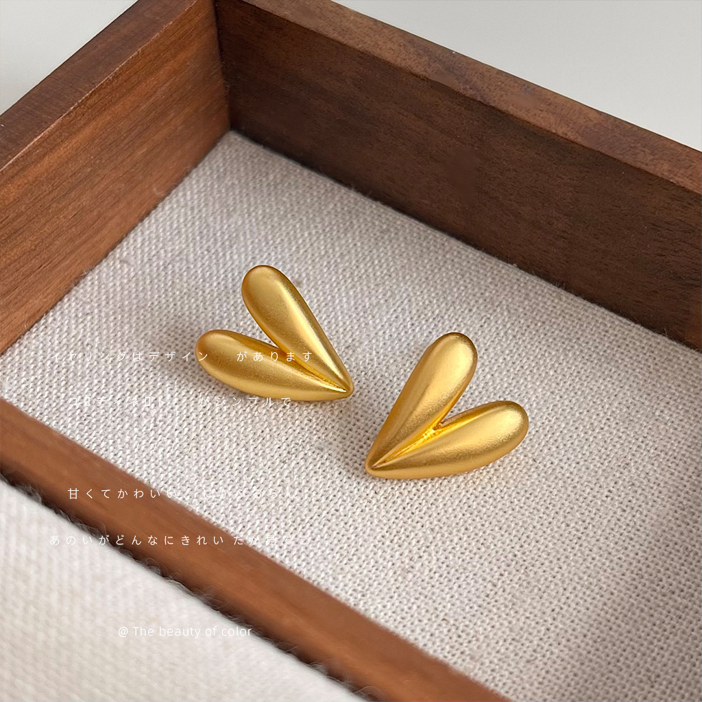霧の面のつや消しの質感の高級感はシンプルで、豪華なハート型のピアスは14kの気質をめっきします。