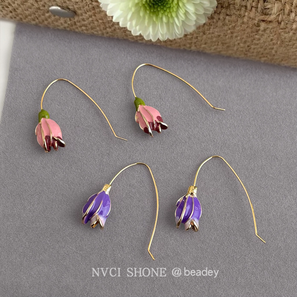 明るい瞳14kアンドロメダのシンプルなチューリップの花の耳飾り生放送のサプライヤーの手作りデザイン感エナメルイヤリング