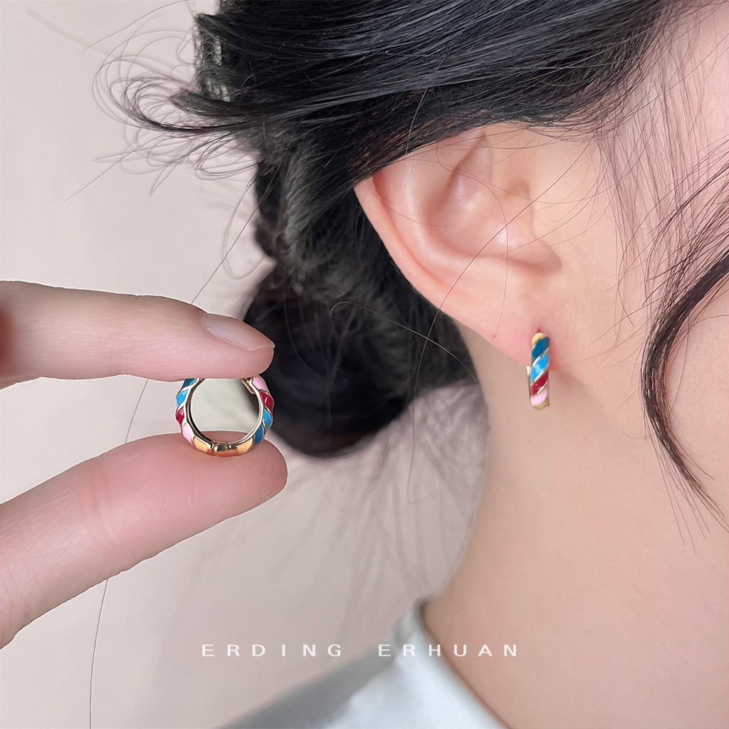 夏の小清新な七色の油の丸い幾何学の甘い耳のボタンの女性の気質は簡単に通勤して日常的に耳飾りを身につけます。