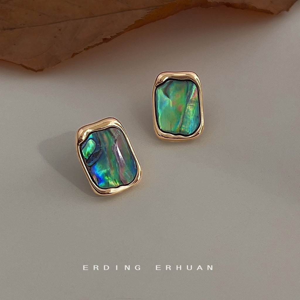 香港風レトロ誇張グリーン幾何学イヤリング高級感文芸清新ぼんやりしています。