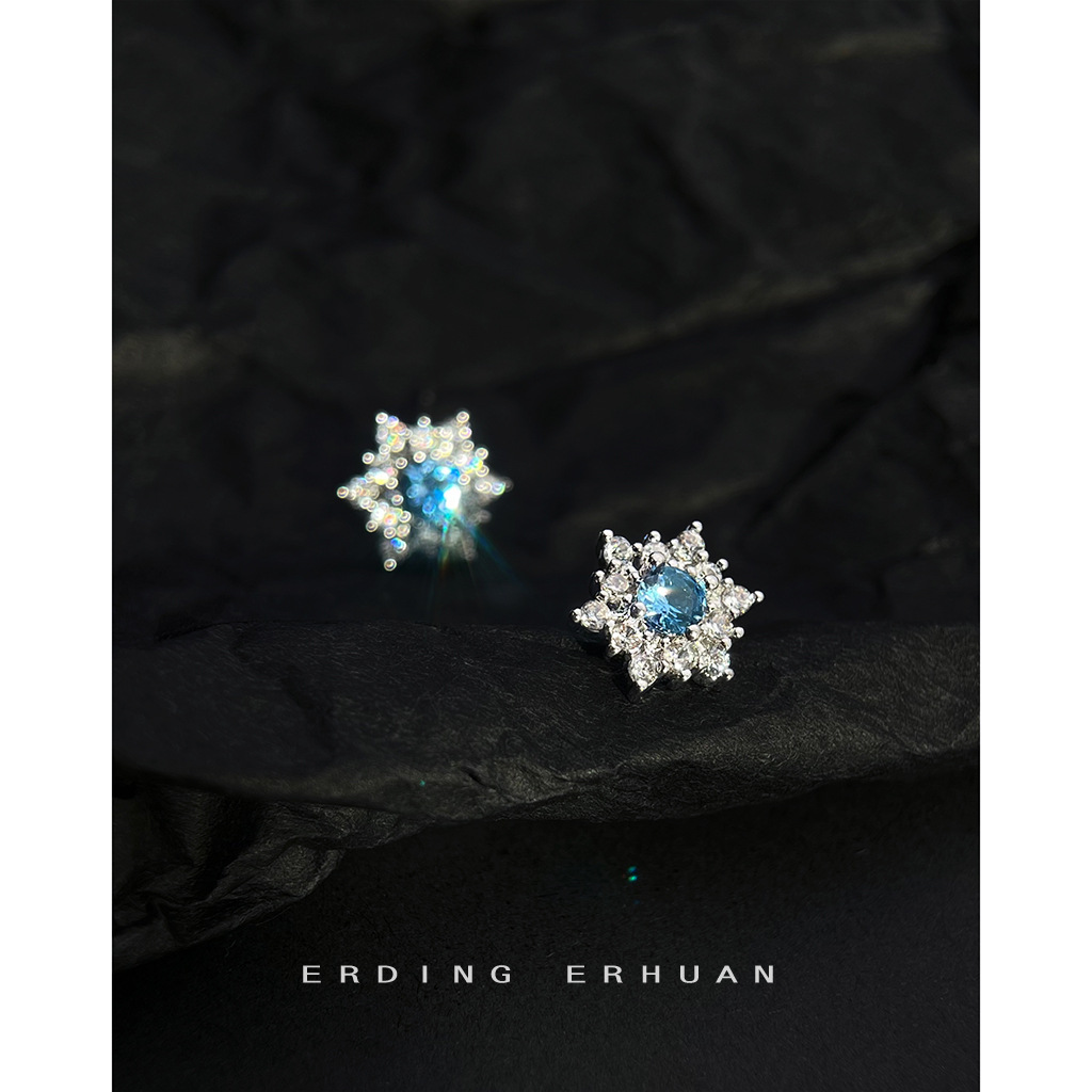 ブルージルコン雪花925銀針ピアス女雪氷軽贅沢気質秋冬百合クリスマス耳飾り工場の供給源