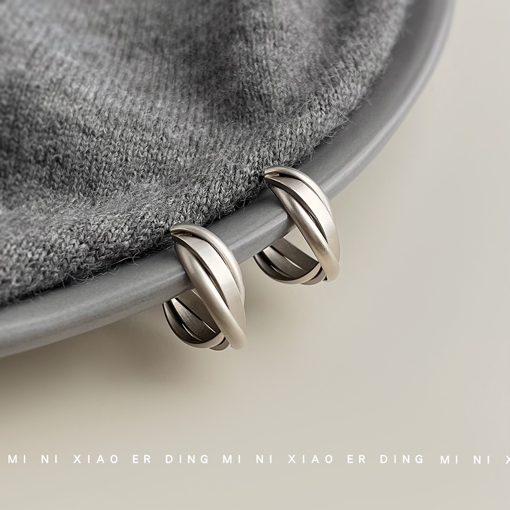 文学的でレトロなクロスライン香港スタイルガングレーイヤリングニッチ韓国デザインハイエンドイヤリング工場
