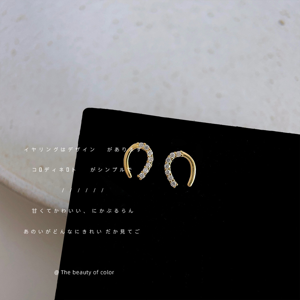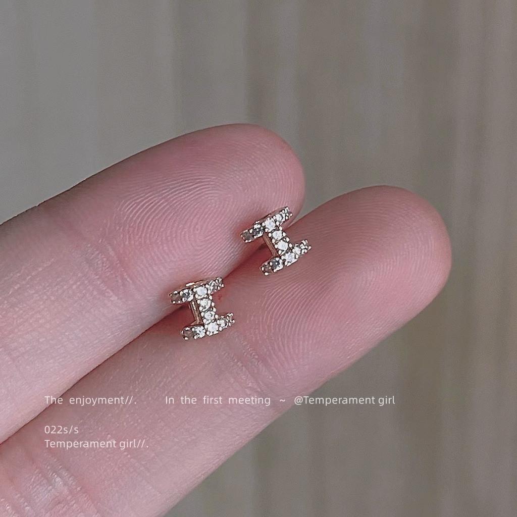 マイクロジルコンH型ミニ通勤小型ピアスファッションシンプルなアルファベット高級感デザイン感耳飾り