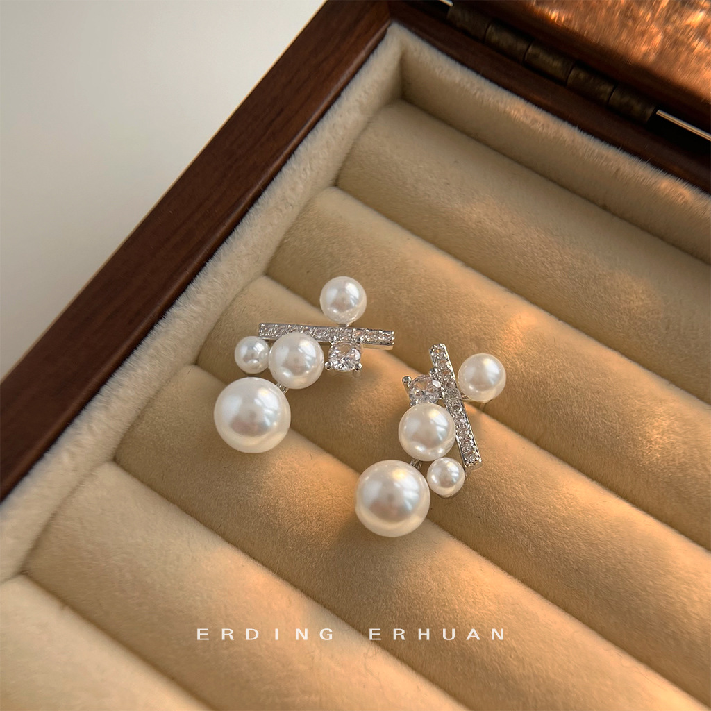 デザイナー925銀針マイクロ装飾ジルコンパーセント記号真珠耳飾り卸売り優雅新工場イヤリング