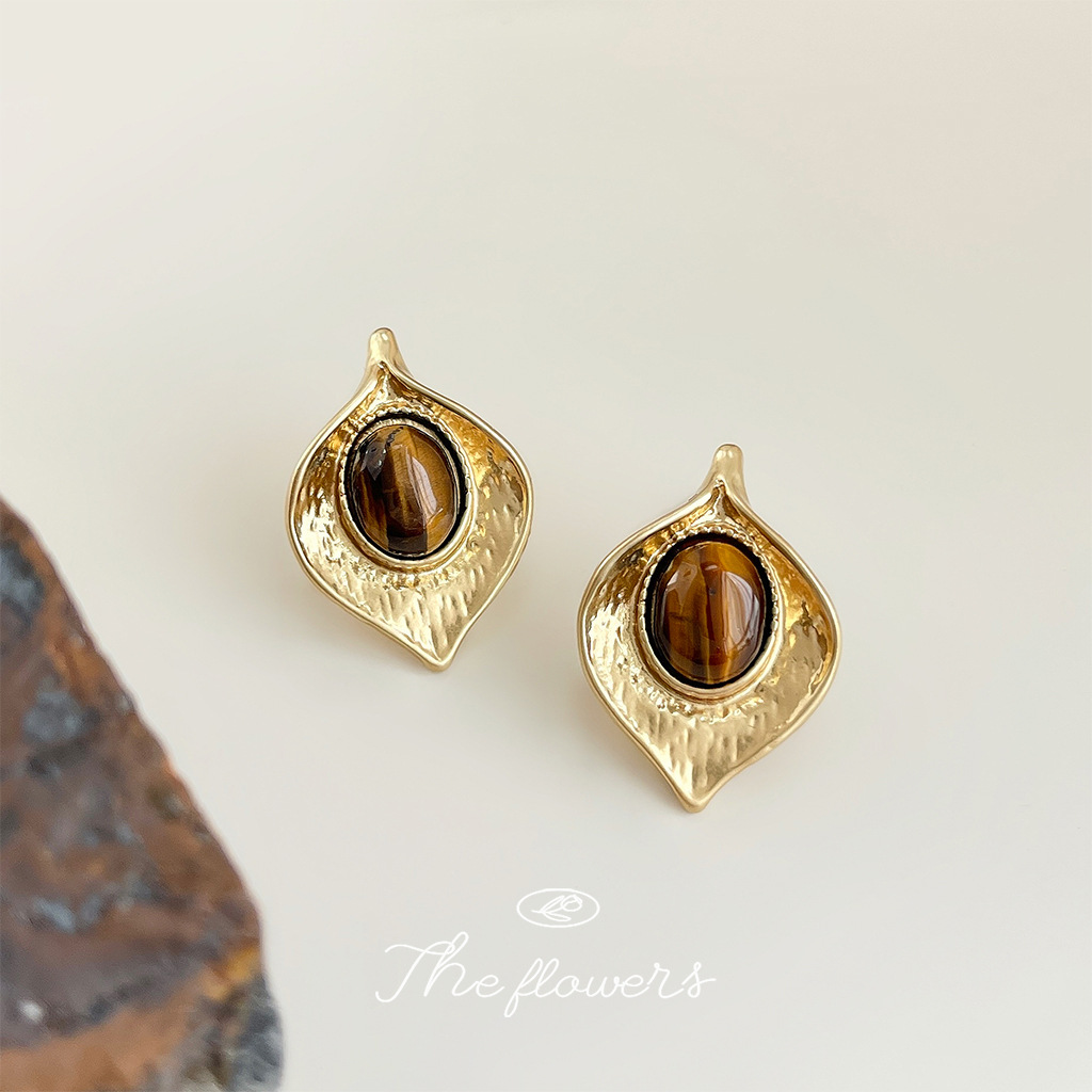 美ラード風虎眼石木の葉小衆デザイナーピアス女性文芸レトロファッション高級感耳飾り工場
