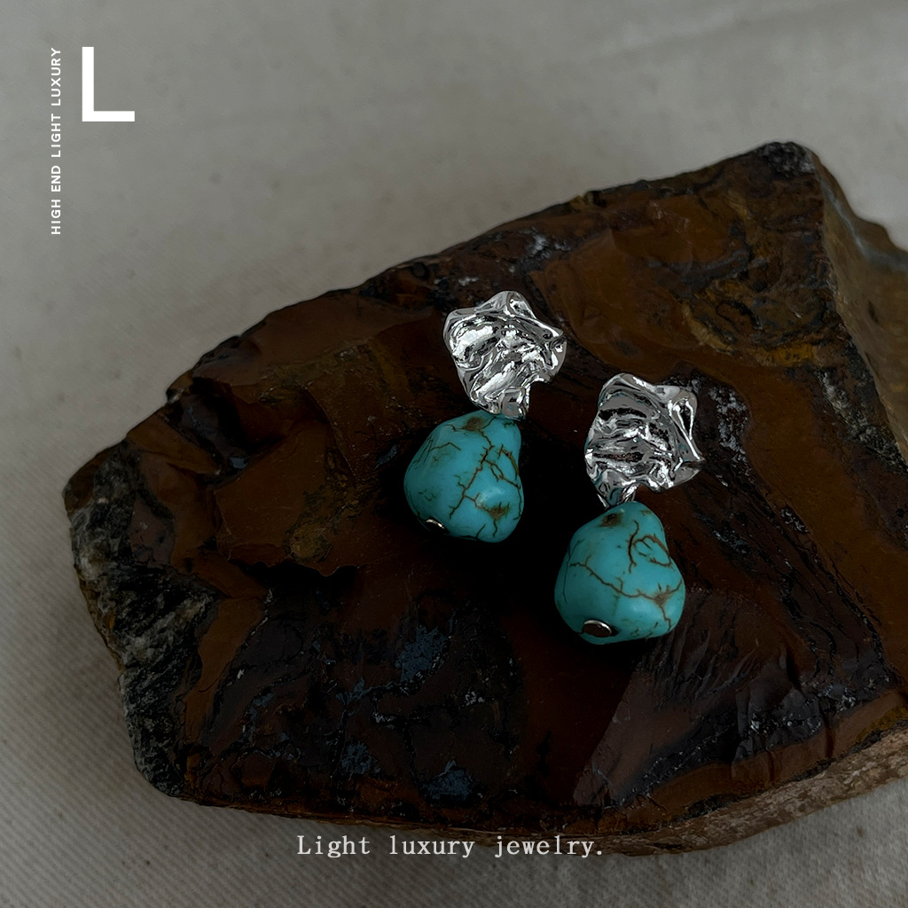文芸レトロ宮廷風手作りデザイン感合成緑松石新耳飾り工場生放送ソースイヤリング女
