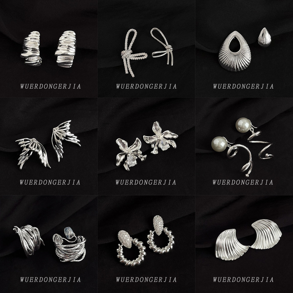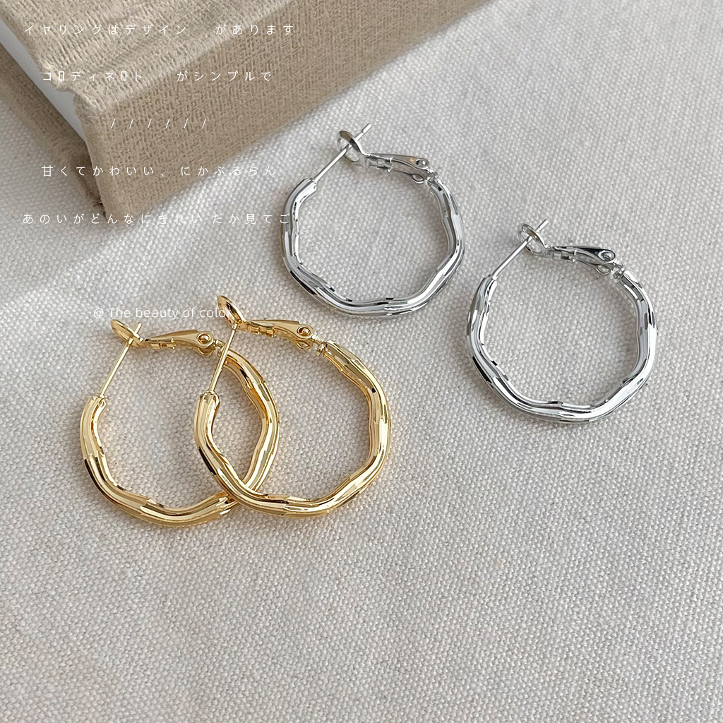 通勤は極めてシンプルなリングの細い耳に冷たい風の高級感の銀色のシンプルな光沢の金属感の気質の耳飾りをつけます。