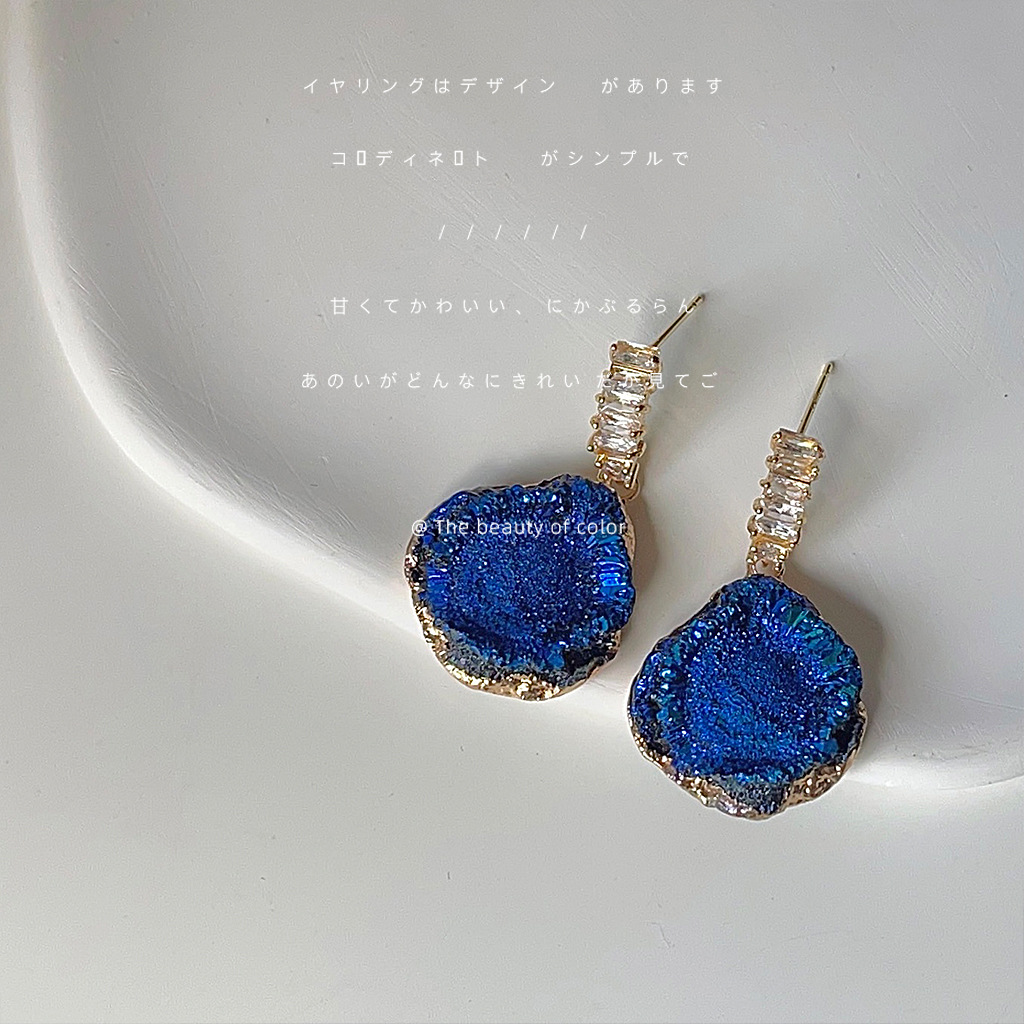 結晶石の切断面の形のイヤリングのクラインの青い大衆のデザイン感の不規則な釉薬のインディゴの高級感の耳の装飾品