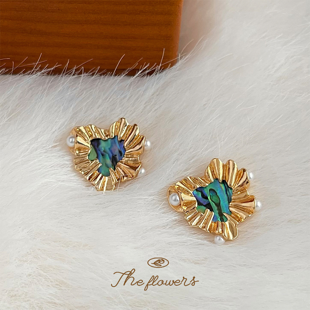 アワビ貝フランス文芸復古メッキ14kシンプルで不規則な愛のピアス気質高級感耳飾り工場