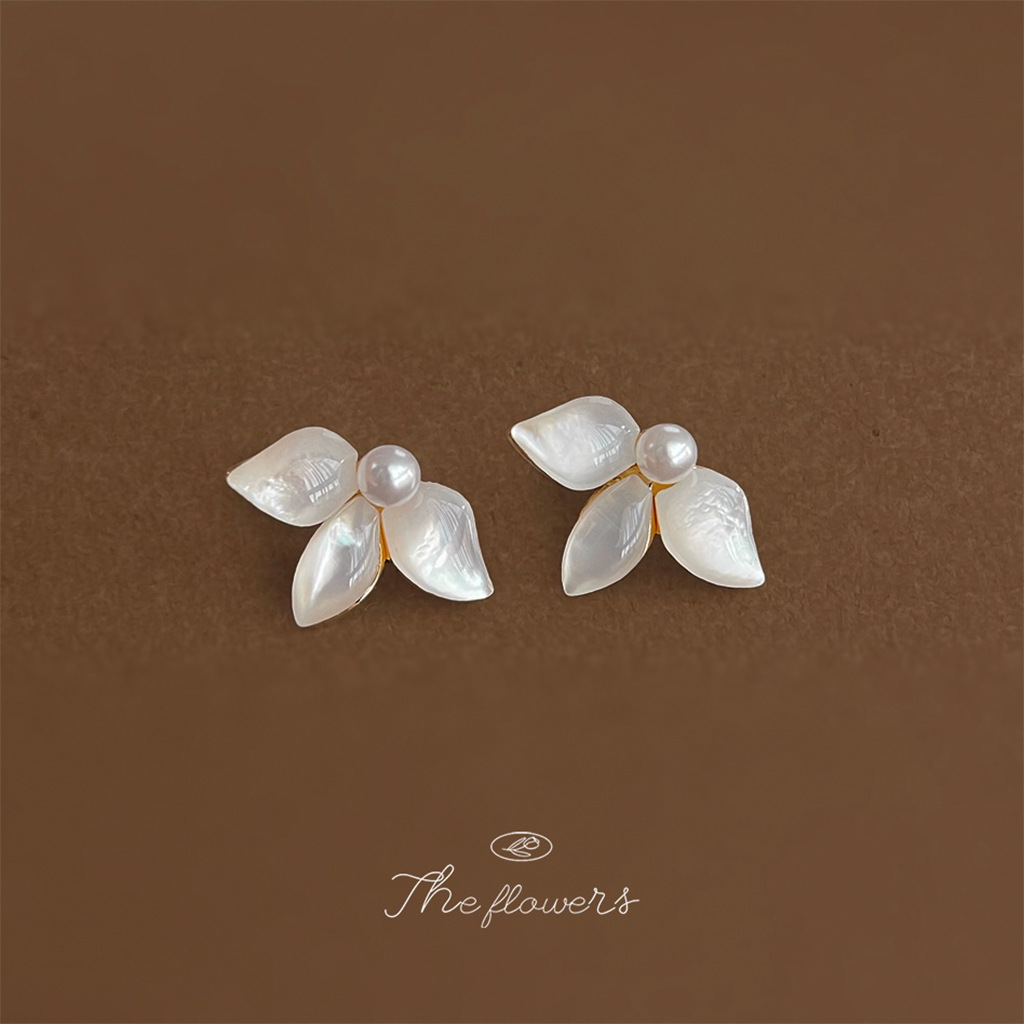 真貝殻ファッション通勤高級感軽贅沢風メッキ14k優雅葉花ピアス気質耳飾り工場