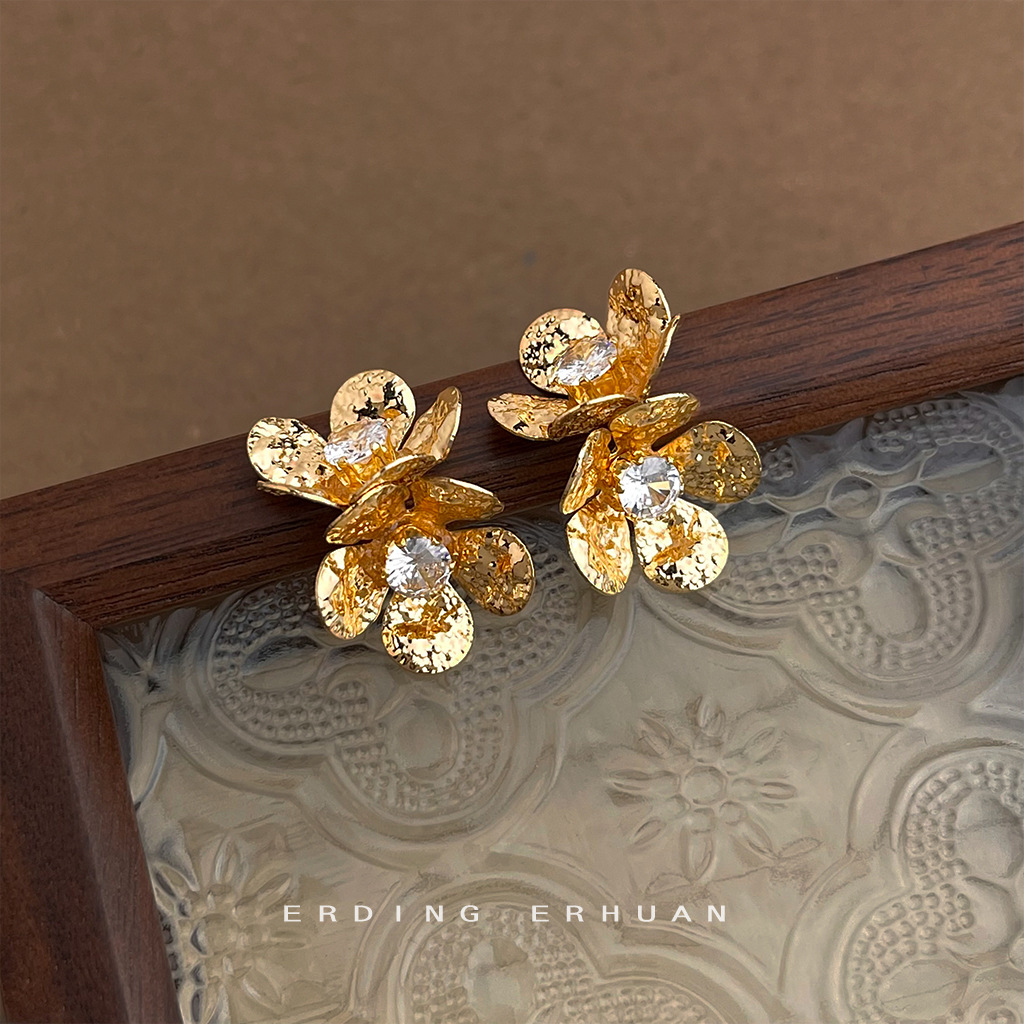 大衆デザインの高級感金属にダイヤモンドの花びらのイヤリングを入れます。