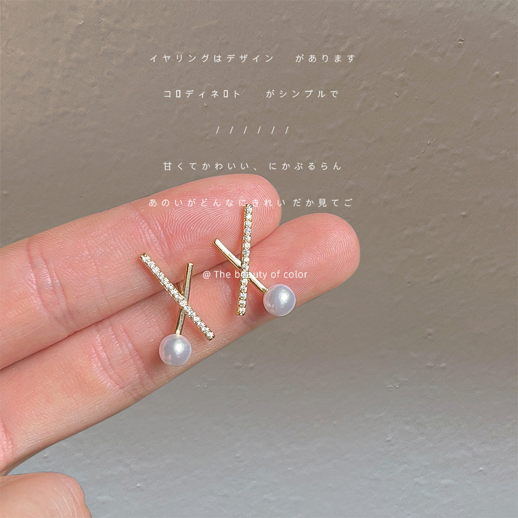 ジルコンを入れて! 925銀針メッキ14k個性クロスピアス気質シンプルinsピアス工場イヤリング女