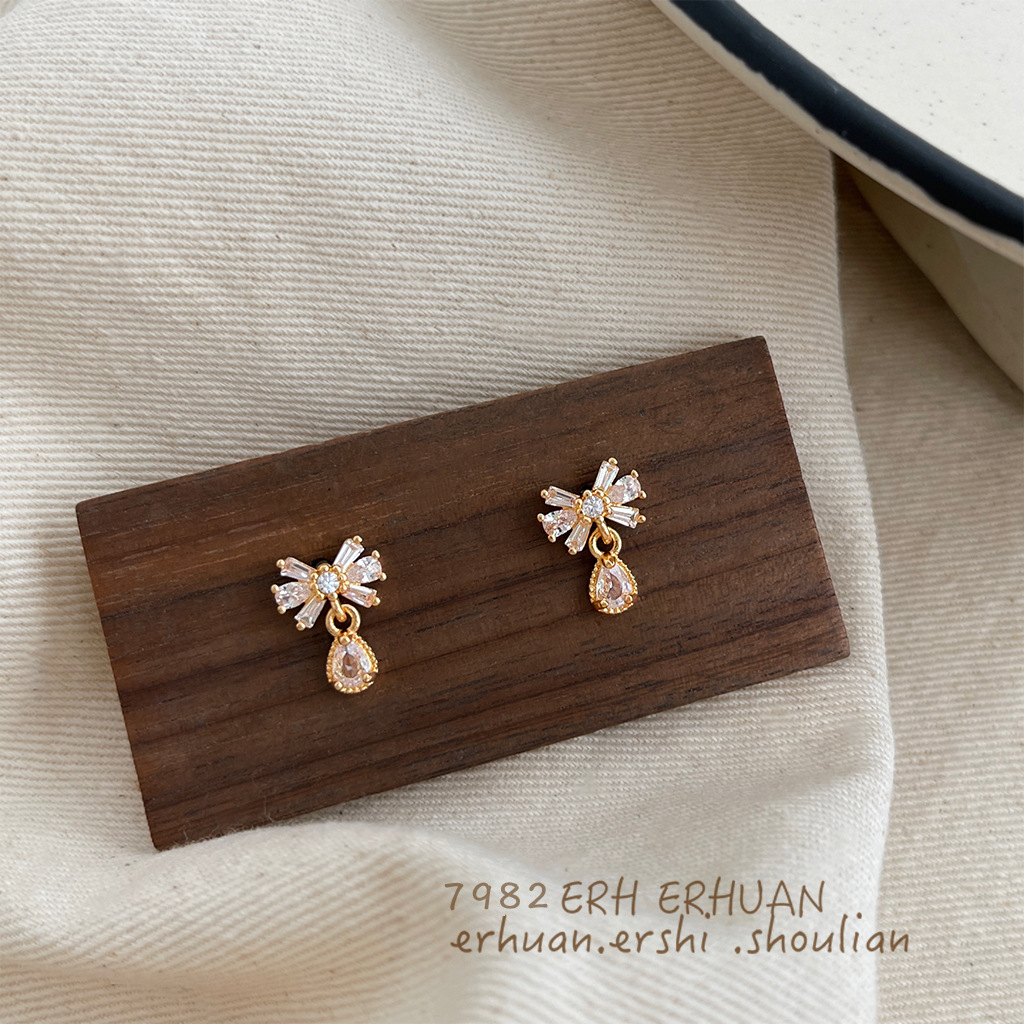 小型ジルコンメッキ14kシンプル通勤ミニ版小型蝶結び水滴耳飾り工場新型ピアス女