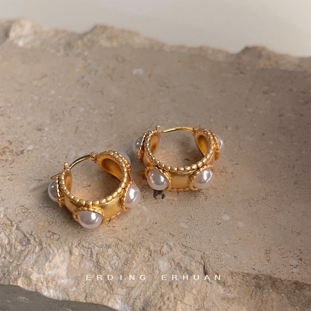 ヴィンテージレトロ宫廷风パールイヤリング中古风高级感軽く豪华な金属感気质ピアス