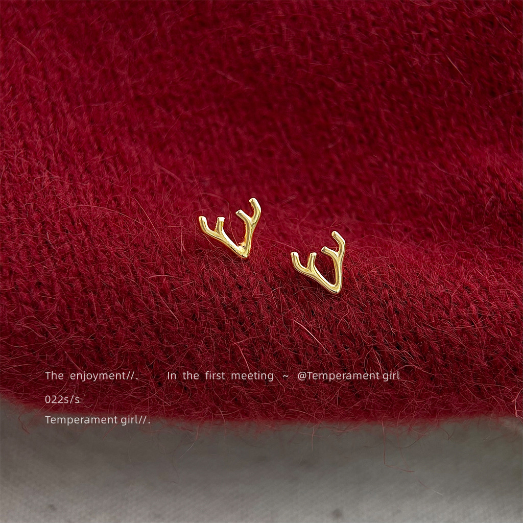 クリスマス鹿ミニ版メッキ14kシンプル鹿角かわいいフレッシュピアス工場耳飾り卸売りアクセサリー