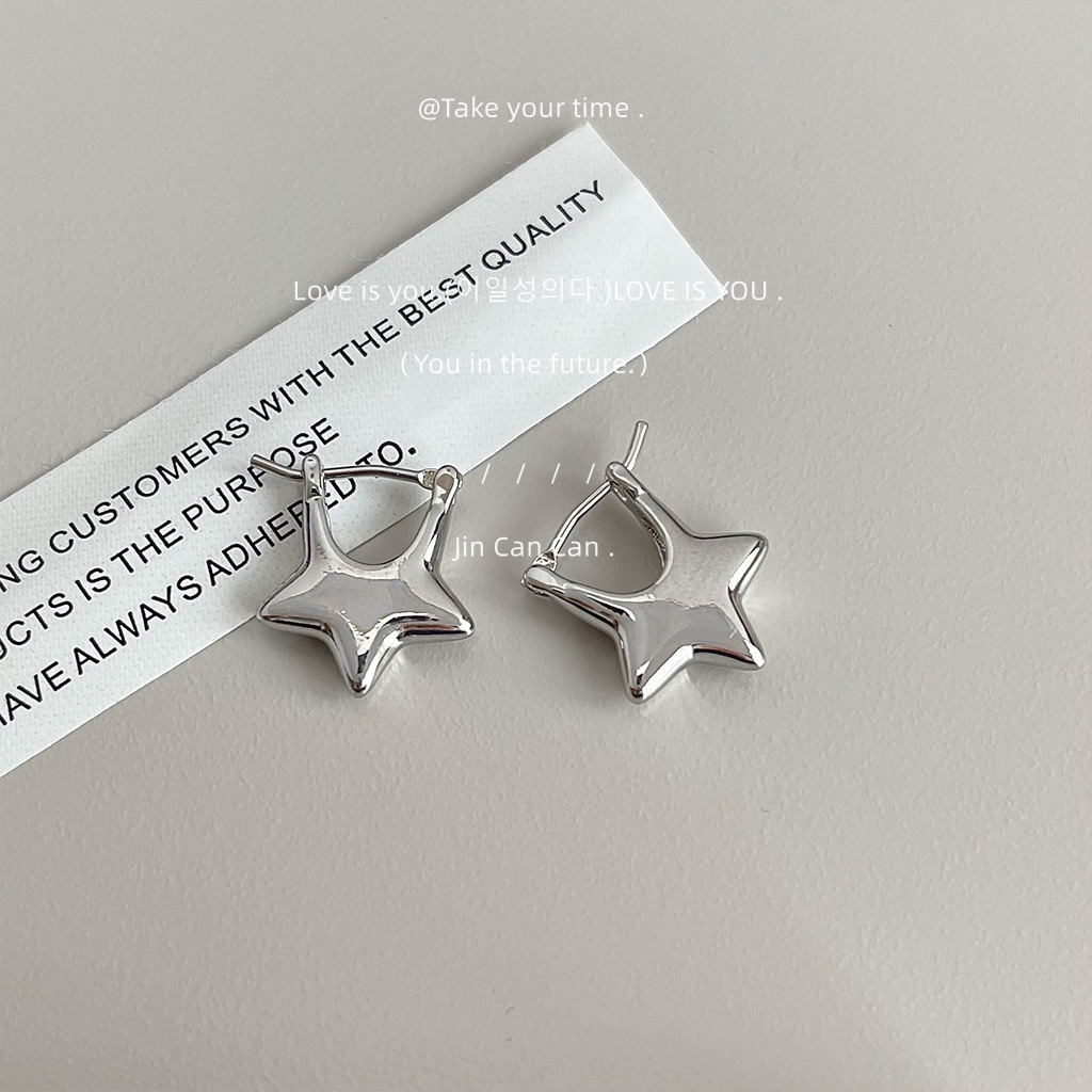 甘いクールな風の個性の銀色の五角星の耳のボタンのinsの冷たいネットの赤い新型の百合の星の耳飾りの工場のアクセサリ