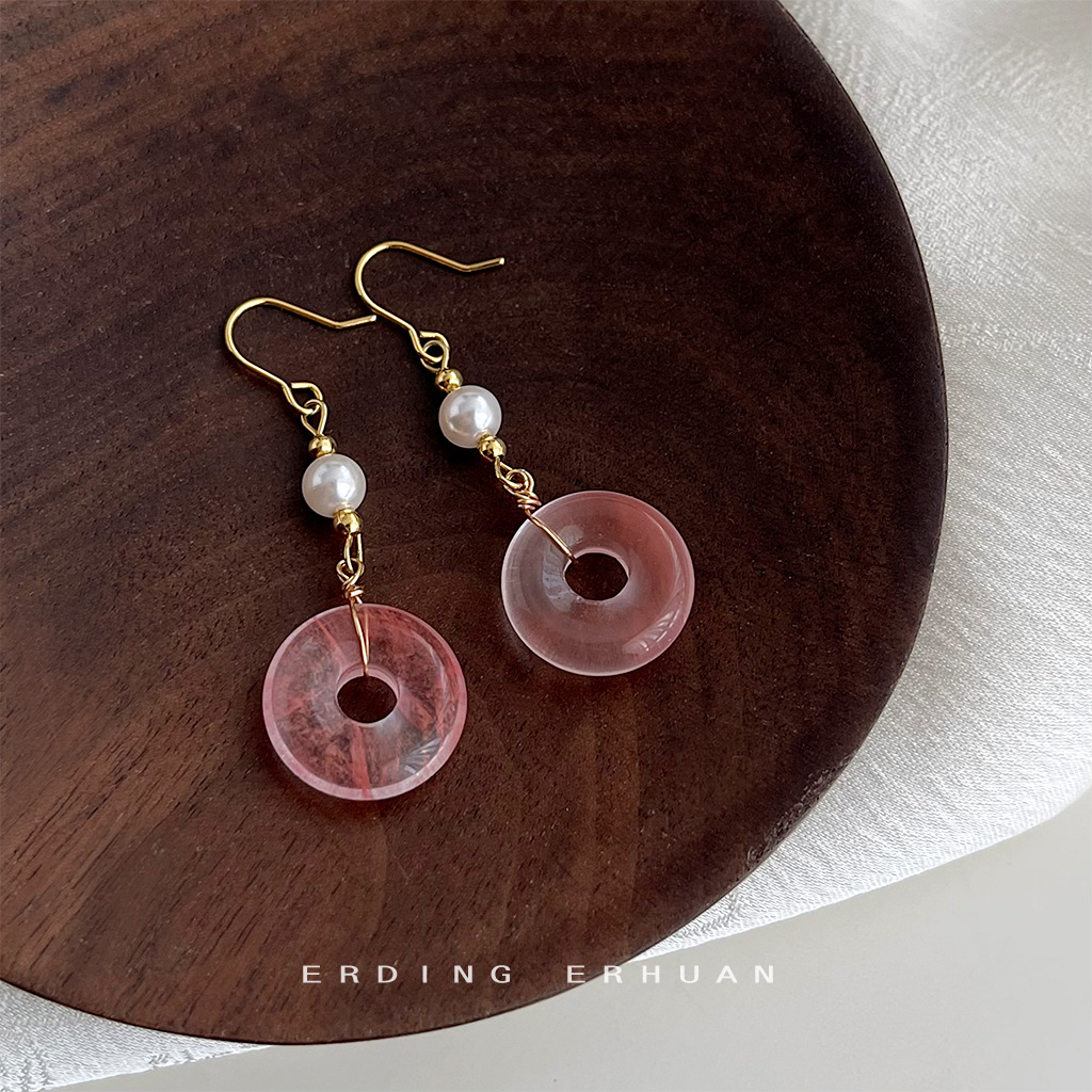 新中国式天然石楠紅円形長金国潮手作平安ボタン長金流蘇高級感春夏耳飾り