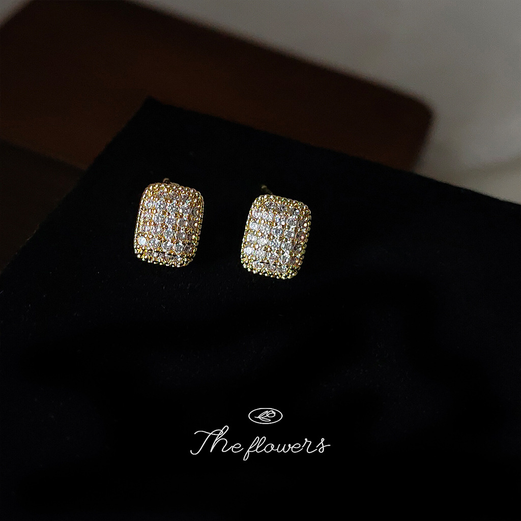 ジルコン925銀針メッキ14k長方形幾何学ピアスシンプルな気質高級感イヤリング卸売り