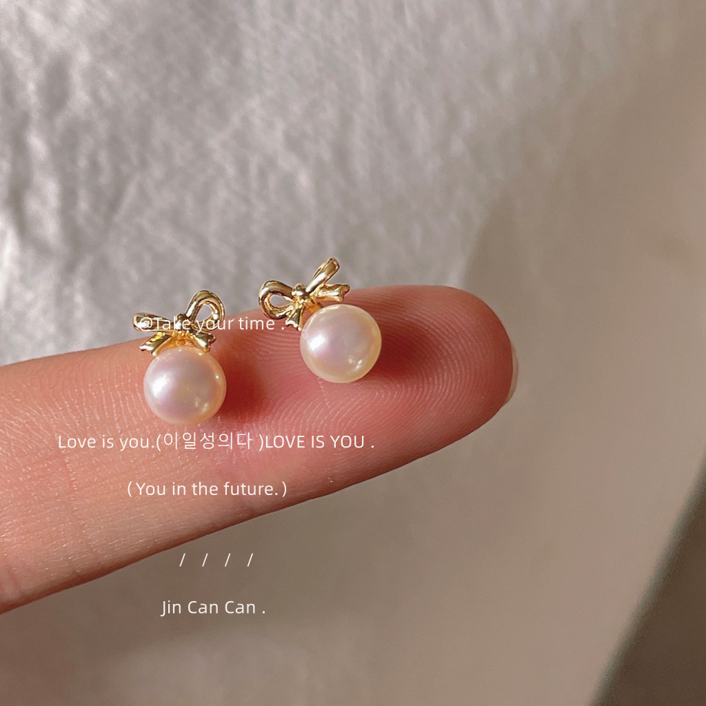 淡水パール ~ 925銀針メッキ14k蝶結びピアスフレッシュミニins耳飾り工場蝶結びアクセサリー