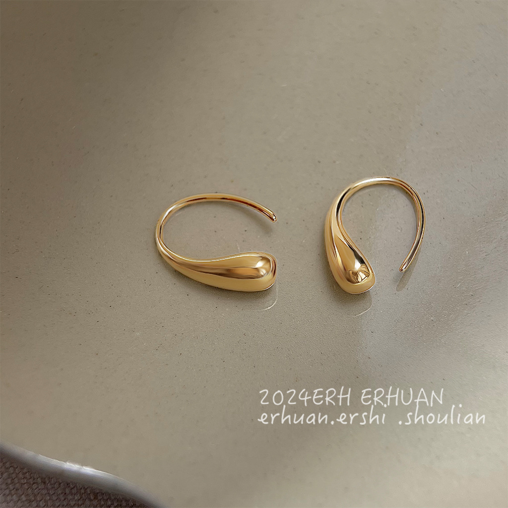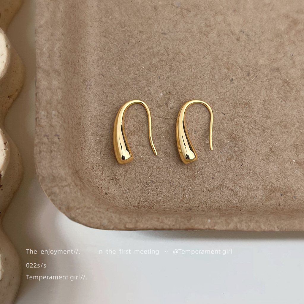 極シンプル主義 ~ メッキ14k金属感水滴高級感新耳飾り工場日常通勤百合イヤリング女