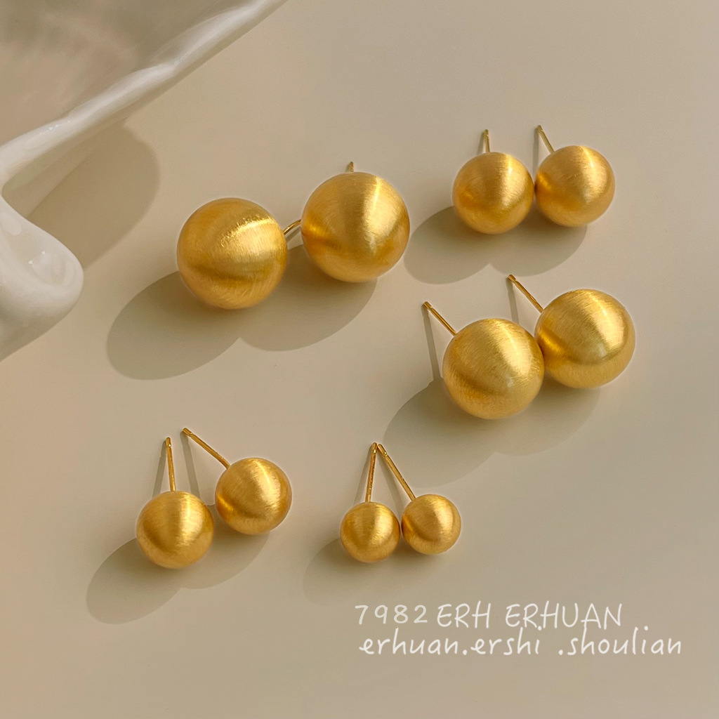 つや消しの質感ファッション通勤高級感メッキ14kシンプルなラウンドボール耳飾り工場ピアス