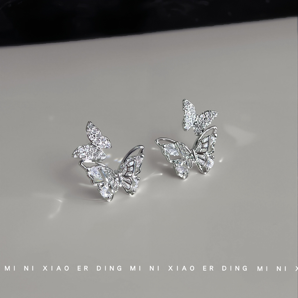 実物が輝いています。ジルコン925銀針双蝶小ピアスが甘くてシンプルな通勤耳飾り工場の供給源です。