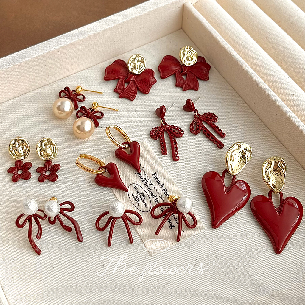 安可拉紅秋冬の人気スタイルの漆の質感のワインの赤色の文芸の復古の耳飾りの工場のピアスの女性のイヤリング