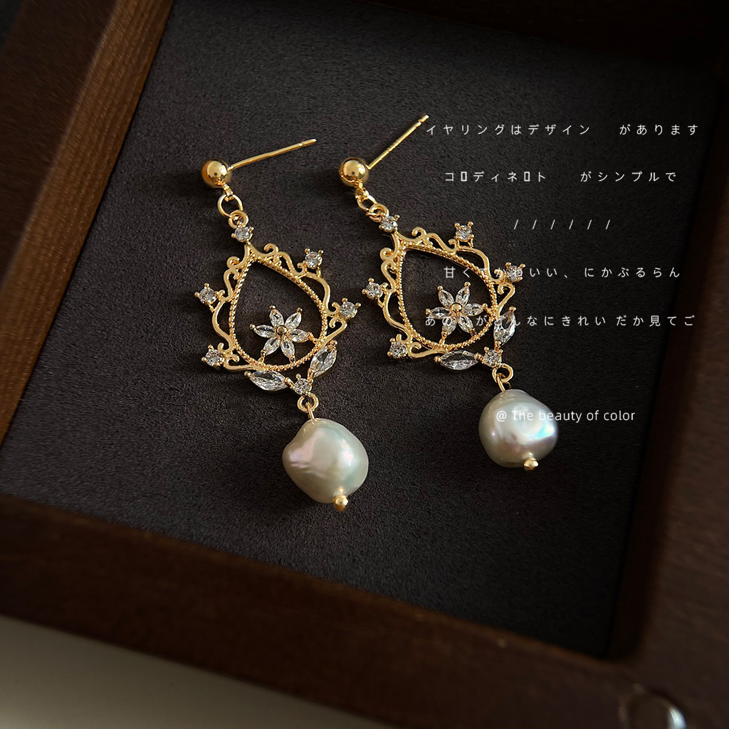 バロック異形淡水真珠マイクロジルコンメッキ14k文芸復古耳飾り工場の新型イヤリング卸売り
