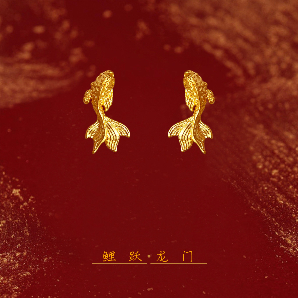 新年金魚鯉電気メッキマットイヤリング個性的な新中式新年イヤリング工場鯉が龍門を飛び越えるイヤリング