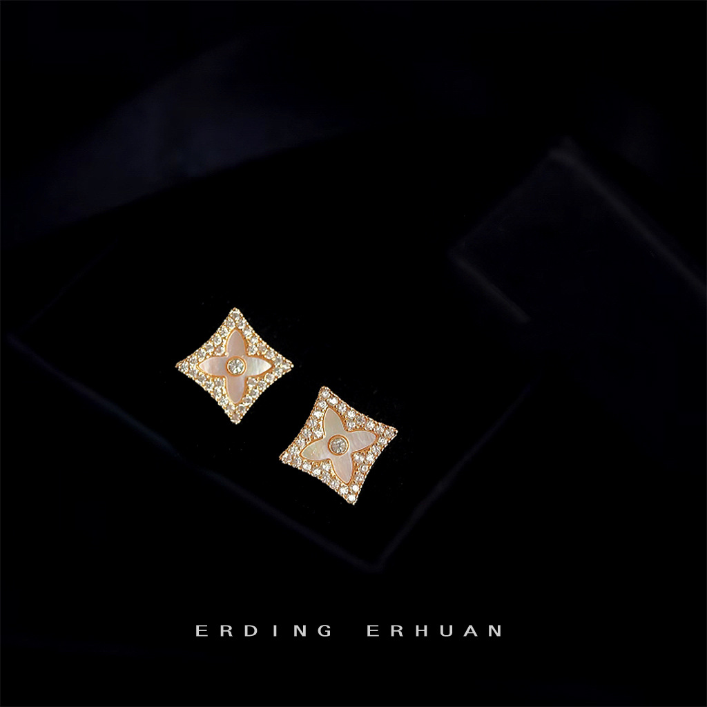 ジルコン真貝殻メッキ14k軽贅沢風高級感角型幾何学老花ピアスメッキ14k耳飾り工場