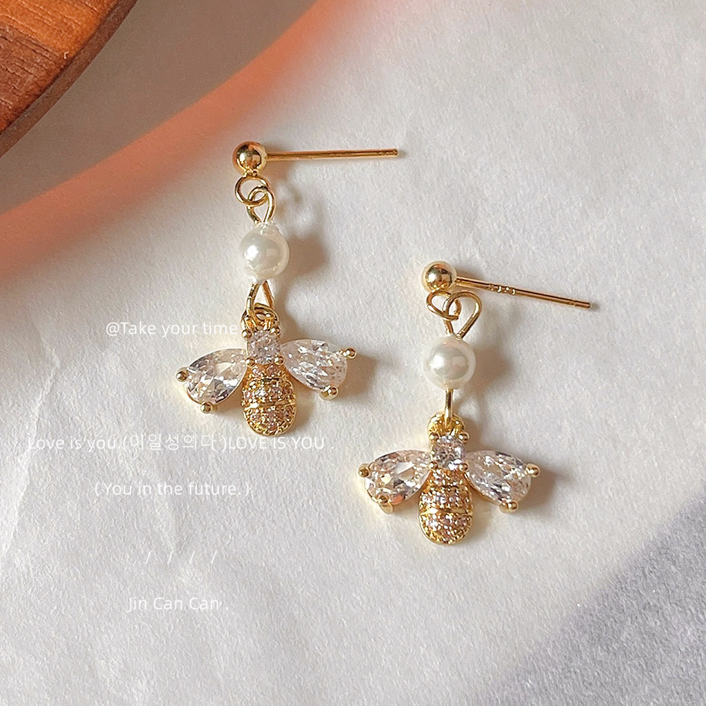 軽くて豪華な高級感の小さいジルコンの金色のミツバチの真珠のイヤリングの千金のマドレーヌの復古のデザイン感の耳飾りの女性