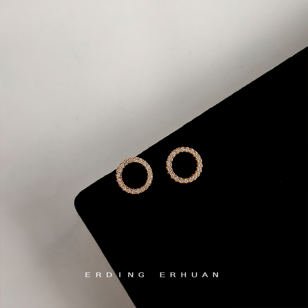 ジルコン円形の幾何学的なピアス925銀針メッキ14kの極めてシンプルなミニ透かし彫りのイヤリング