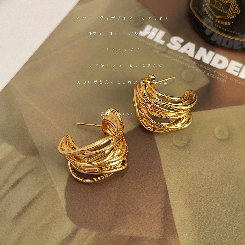 金属感重工気質高級感メッキ14kファッション通勤欧米耳飾り工場イヤリングネット赤アクセサリー