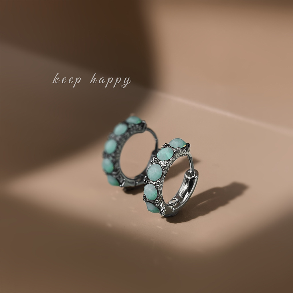 春夏のモデルの甘いクールな風の個性の卵白の緑の気質の百合の潮のガラスのドリルの耳飾りの工場のイヤリングのinsの耳のボタン