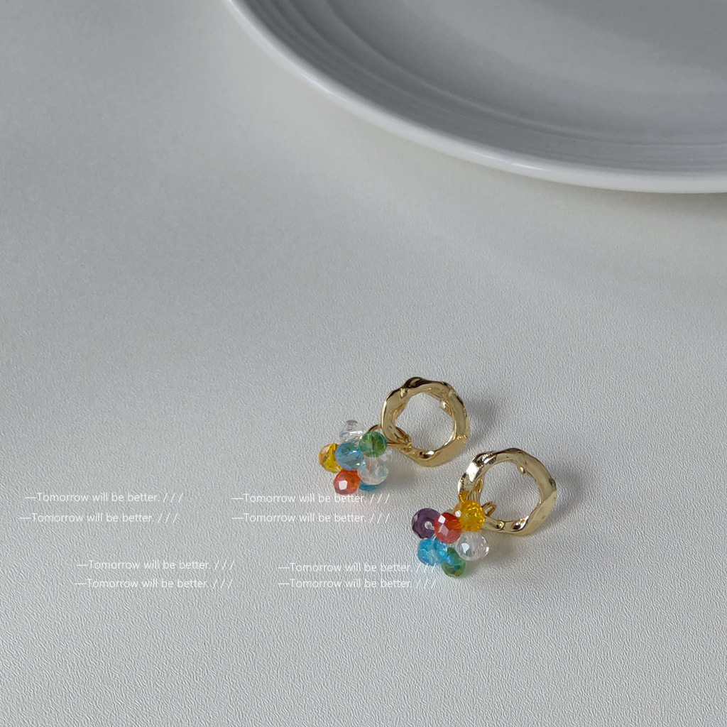ステンドグラス水晶手作りビーズピアスフレッシュで甘いキャンディー色のドーパミン高級感イヤリング女