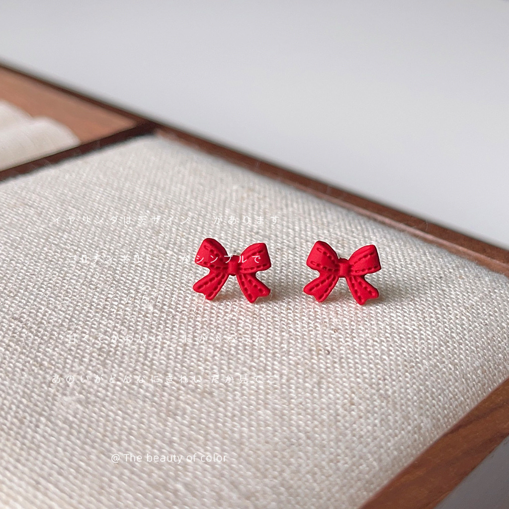 ミニ蝶結び ~ 925銀針塗装赤小型ピアス日常百合甘耳飾り工場イヤリング