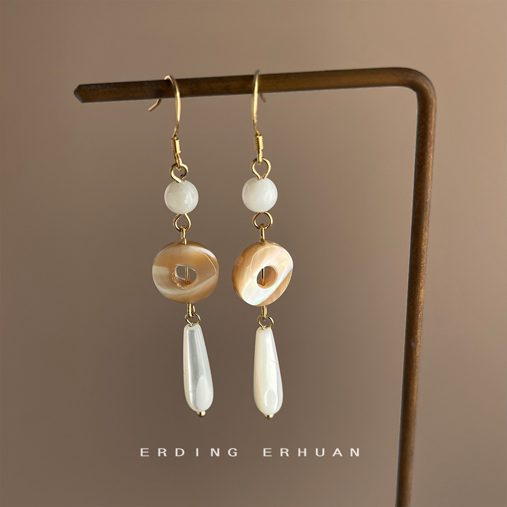 新中国式真貝殻手作りデザイン感芸術の息吹925銀針耳飾り工場2023新型長耳ペンダント