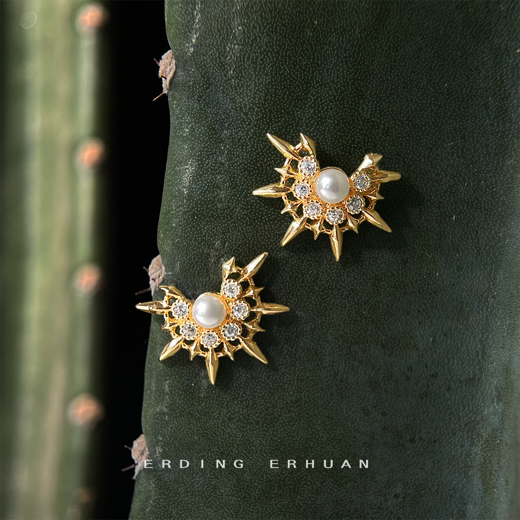 デザイナーモデル! 小型ジルコンファッション高級感925銀針メッキ14k太陽耳飾り工場ピアスアクセサリー