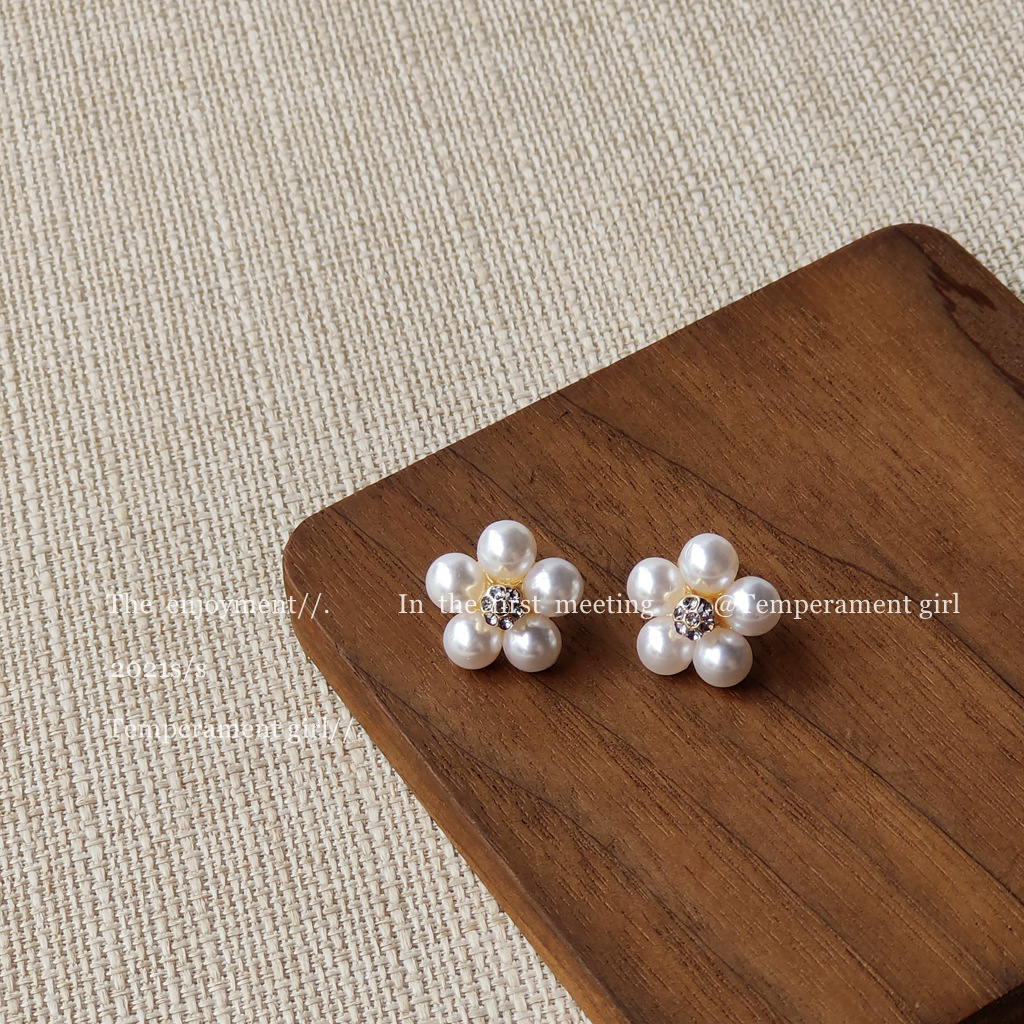 軽くて豪華で甘い真珠の花のピアスファッション通勤シンプルで優しい女性のヘボン風の丸い花のイヤリングの女性