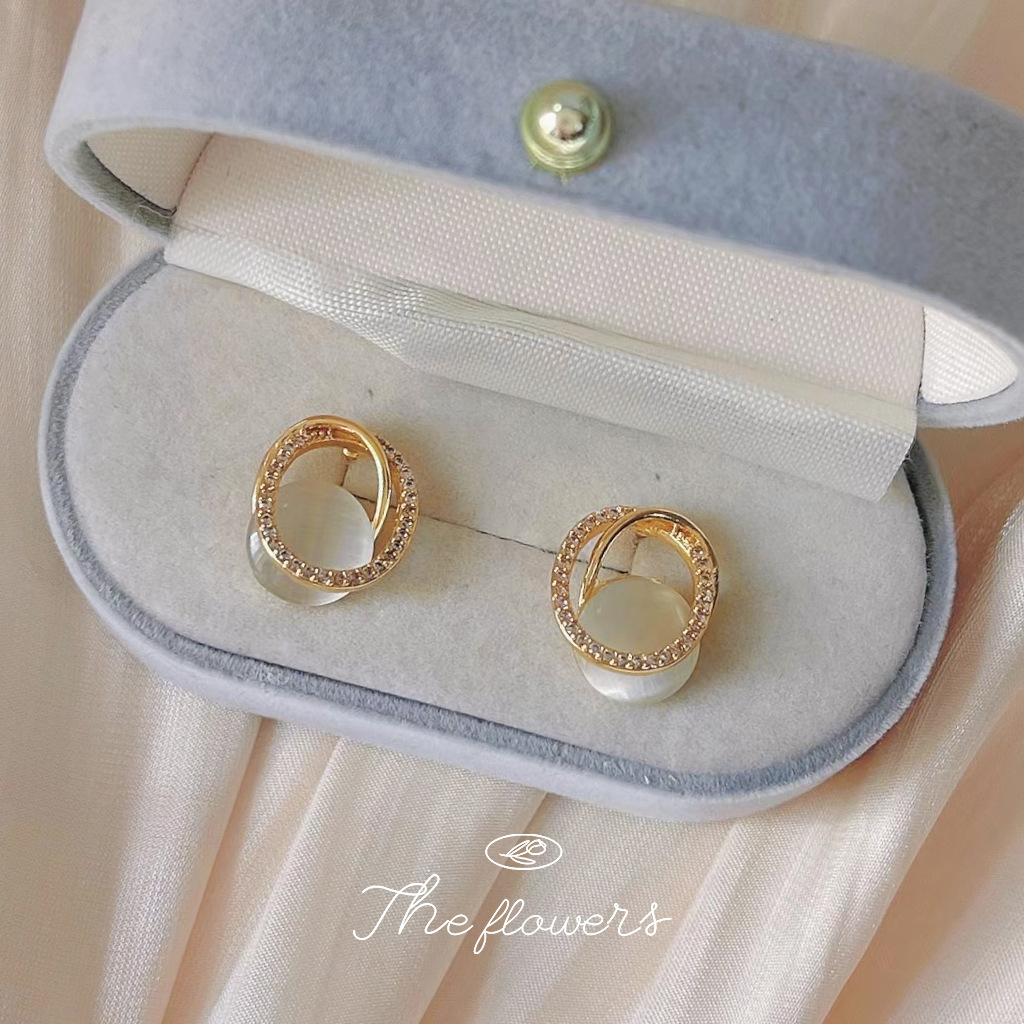 フレンチライトラグジュアリーホワイトガラスキャッツアイ気質イヤリング通勤多用途エレガントマイクロ象嵌ジルコンハイエンドイヤリング