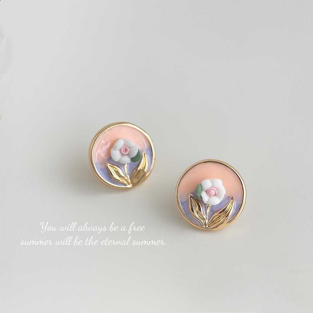 新鮮で甘い手作りオイルドリップラウンド幾何学フラワーイヤリング女性用 14K エレガントなイヤリング工場義烏ジュエリー