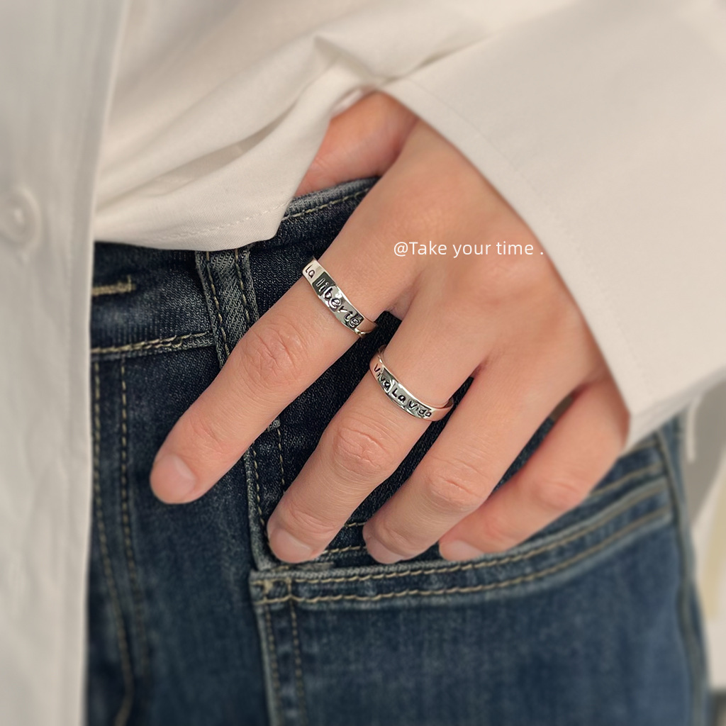 ファッショナブルで甘くてクールなスタイルのニッチデザイナーレターメッキリアルゴールドカラーリテイントリング開口部調節可能な女性用リング
